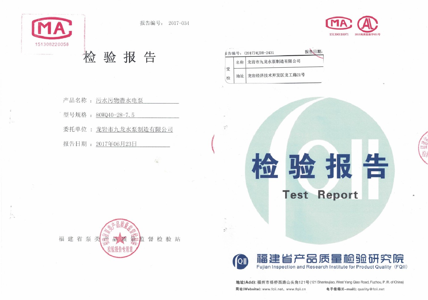 污水污物潛水電泵檢驗(yàn)報(bào)告